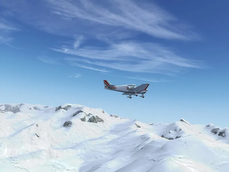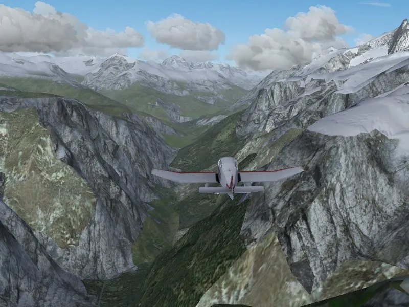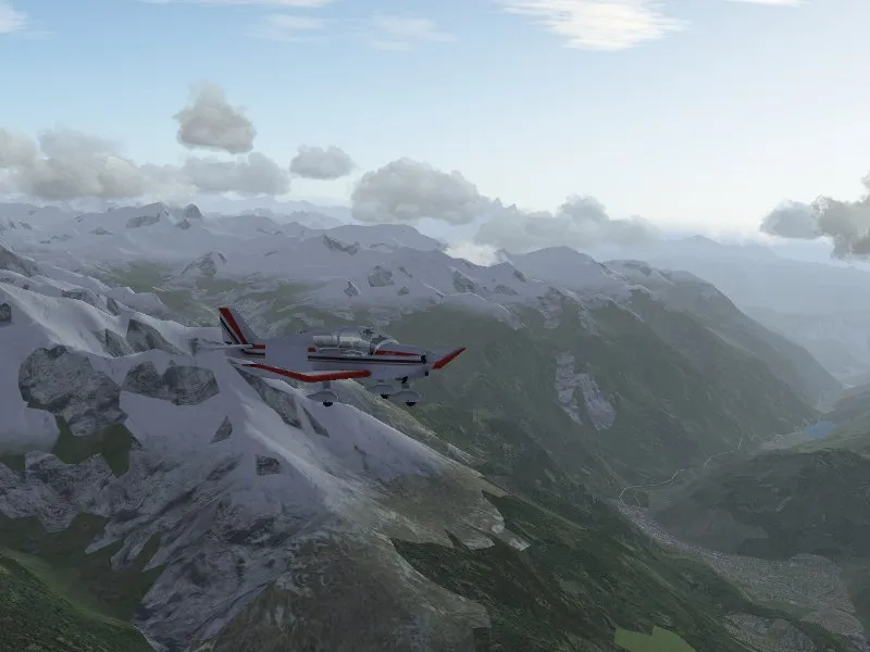 Snowcover in FlightGear can be generated by shader effects with a user-controlled snowline. Since the shader effect does not place snow on steep slopes, the outcome looks very compelling.