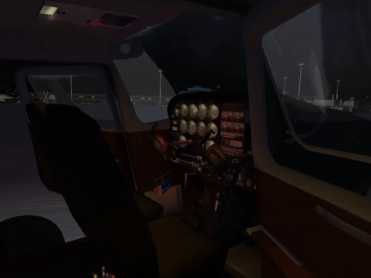 The plane now makes use of lightmaps, making night flights much more immersive than before. These include post lights, which are installed on individual gauges, a red flood light which can be used during night flights too, and a white dome flight and wing courtesy lights to be used while in the ground during the pre-flight checks. The lightmap illumination responds to the environment light and dims during daylight.