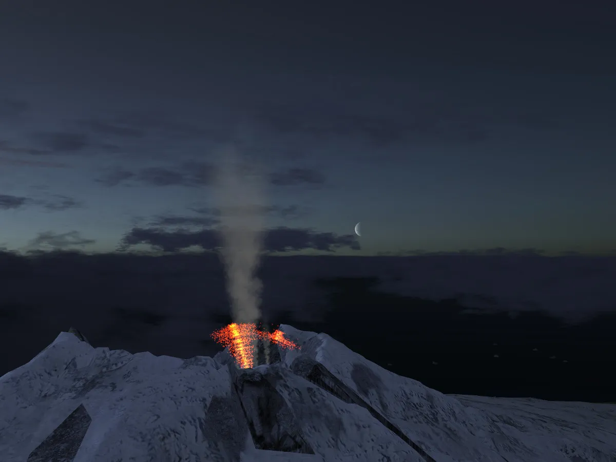 An exciting new spot to explore is the Arctic island of Jan Mayen, situated north east of Iceland. It received a makeover with corrected elevation data and coastlines, and is now available via TerraSync. The volcano, Beerenberg (2277m) is also now one of the active volcanoes simulated in FlightGear, making for an impressive sight as the snow covered peak belches out smoke and ash.
