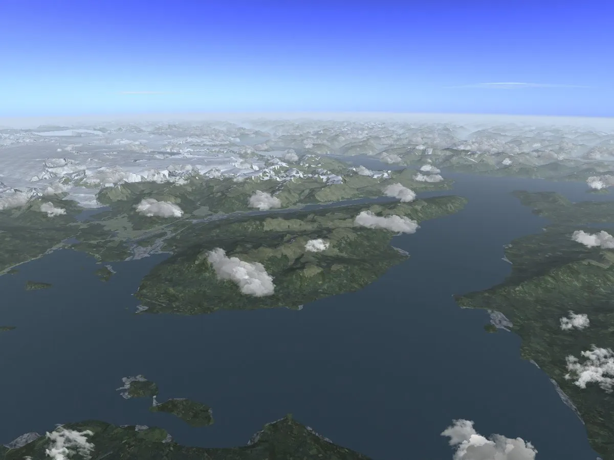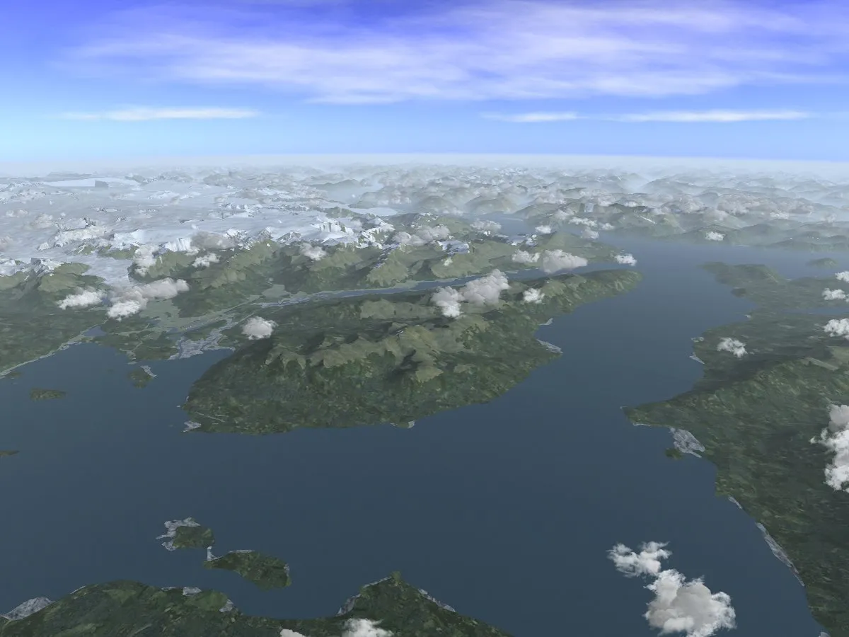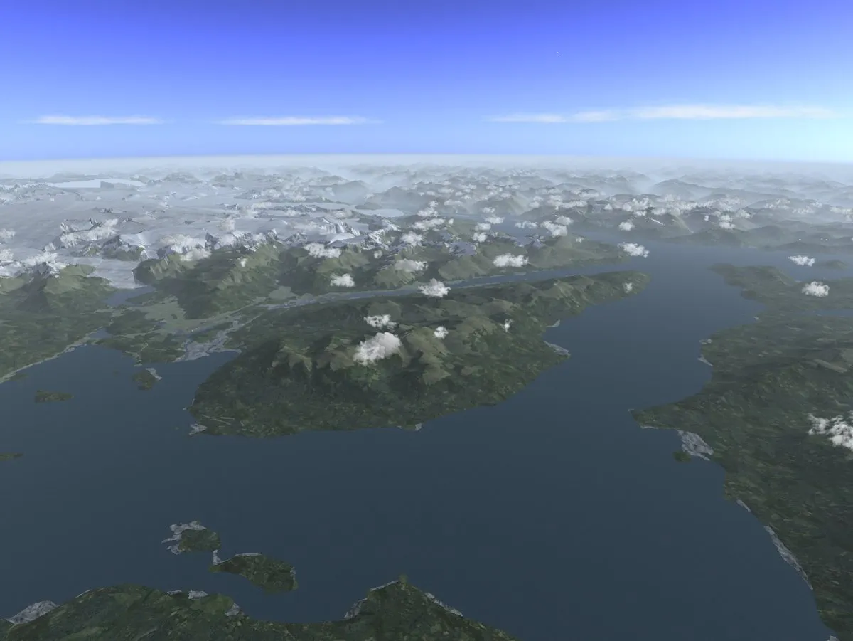 The screenshots shown in the following use shaders, textures and scenery which are for various reasons (incompatible license, too recent development,…) not part of the official FlightGear 2.6 release. However, these are available for download and every feature works with FlightGear 2.6. The following packages need to be installed in addition to get to see the same: lightfield shader package v1.1, Juneau custom scenery, and textures from regional textures v0.1.