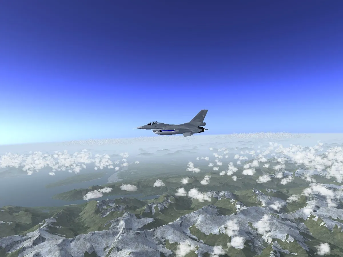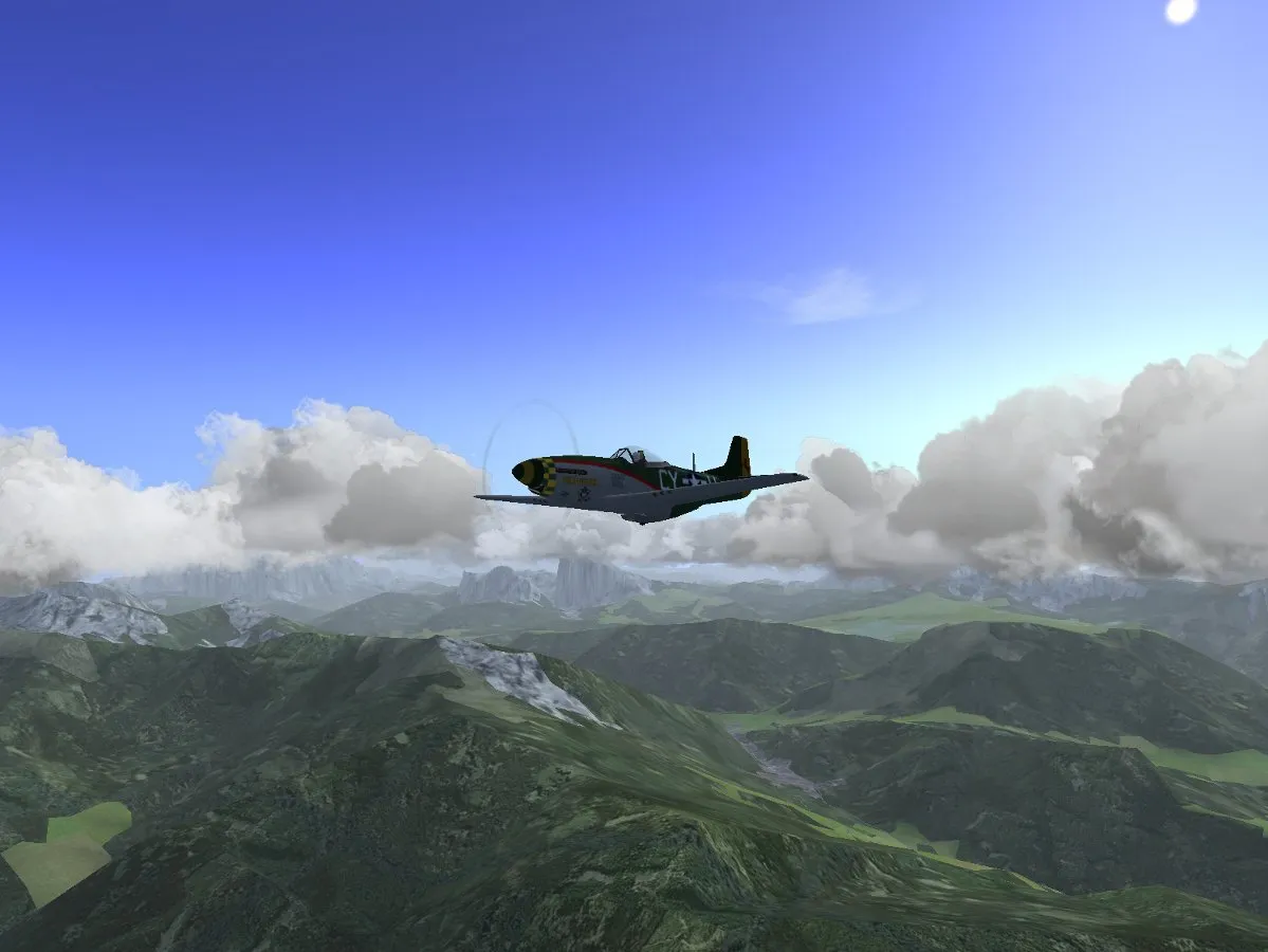 If the appropriate option is selected, thermals are automatically generated along with Cumulus clouds so that thermal soaring is possible. Combined with the effect of ridge lift, this can make for rather realistic mountain soaring conditions in which a good degree of skill is required to stay in the air.