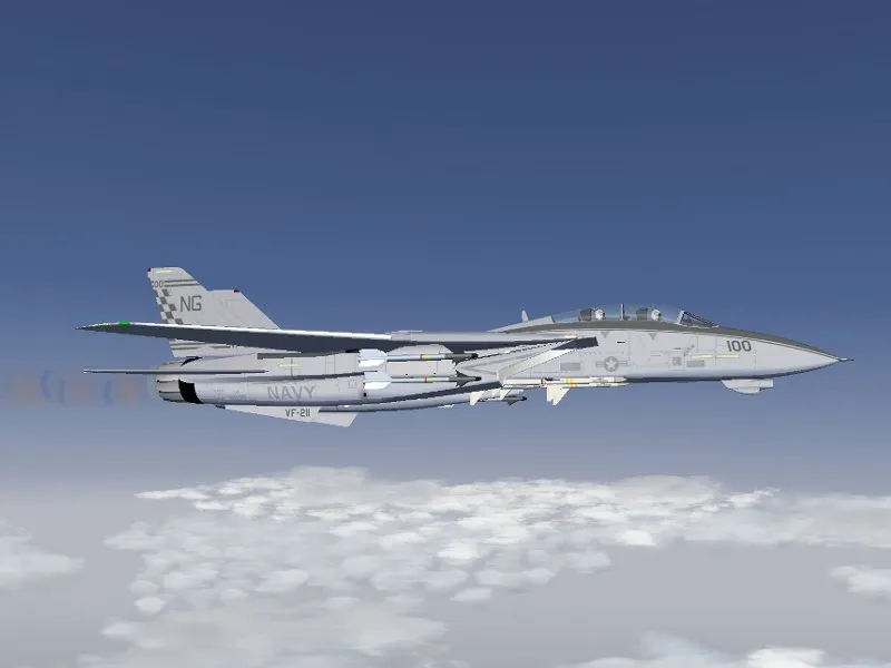Many planes in FlightGear have realistic autopilots. In the case of the F-14b, the AP is carefully limited to what functionality its real counterpart can provide – it is a simple system that can level wings, hold an altitude and hold a course, but it cannot by itself follow radio navigation as the more modern systems of other planes do.