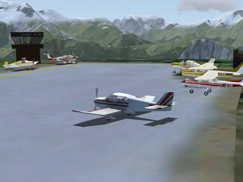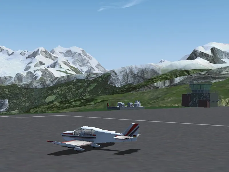 Flying the French Alps is significantly more interesting by using the highly detailed custom scenery which is available for free under a Creative Commons Attribution-ShareAlike 3.0. There are six altiports in the French Alps, L’Alpe d’Huez, Courchevel, La Rosiére, Mégève, Méribel and Valloire, along with a number of airfields in the valleys. The first two of these, L’Alpe d’Huez (LFHU) and Courchevel (LFLJ), have been modelled in detail for the custom scenery and are available from the PAF team hangar. This package also contains a detailed model of Grenoble Le Versoud Aerodrome (LFLG) which is a good place to take off for a first look at Courchevel or L’Alpe d’Huez.
