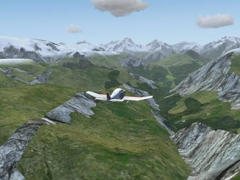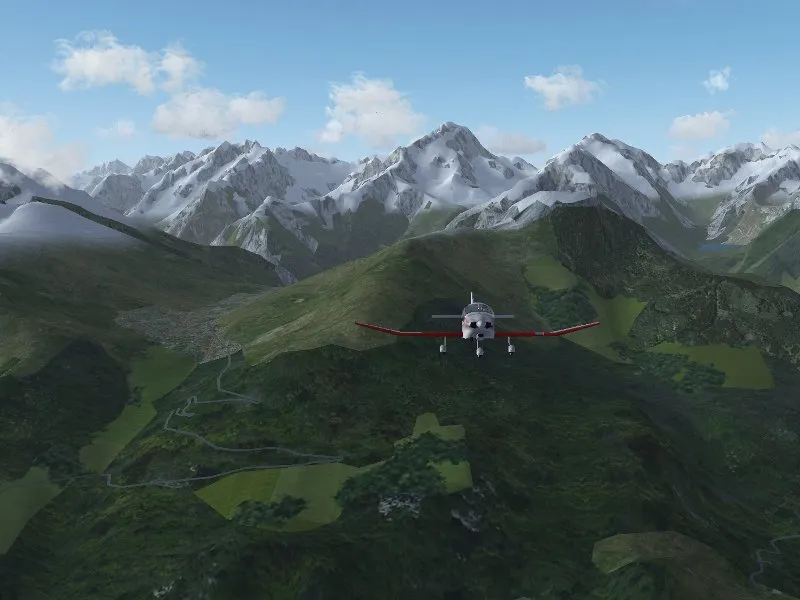 Snowcover in FlightGear can be generated by shader effects with a user-controlled snowline. Since the shader effect does not place snow on steep slopes, the outcome looks very compelling.